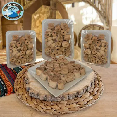 Bayburt’un geleneksel mutfağının en özel lezzetlerinden biri olan ev yapımı ziron, tamamen doğal malzemelerle, el emeğiyle hazırlanır. Bayburt’un verimli topraklarında yetişen buğday ve diğer yerel malzemeler, ustalar tarafından özenle işlenir ve zarif bir şekilde şekillendirilir. Yumuşak dokusu ve hafif ekşimsi tadı ile ziron, özellikle etli yemeklerin ve yoğurtlu tariflerin yanında mükemmel bir eşlikçi olur. Bayburt mutfağının geleneksel lezzetini yansıtan bu eşsiz ürün, katkısız ve doğal yapısıyla sofralarınıza hem sağlık hem de geleneksel tatlar sunar.